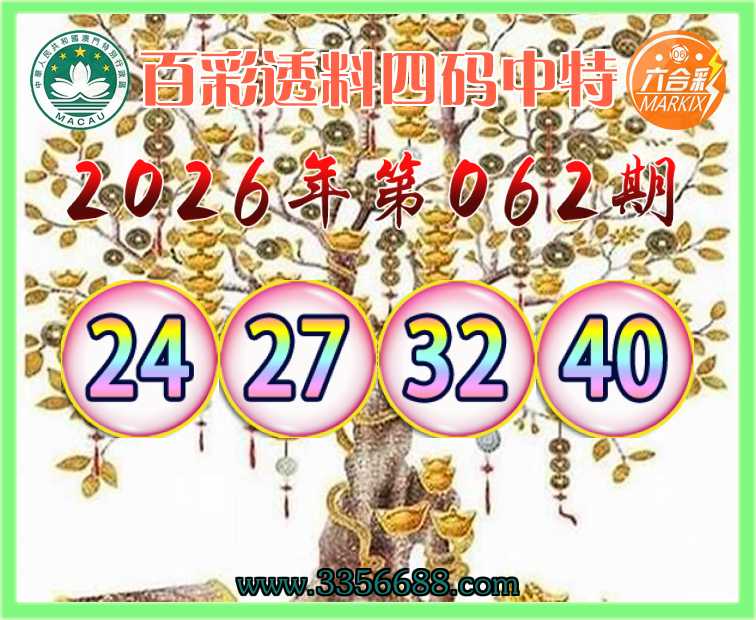 062期: 百彩透料 🀄四码中特🀄【24.27.32.40】开:24准上榜高手