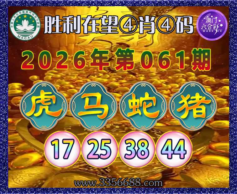 061期: 🧣『胜利在望』 🧣④肖④码🧣【马蛇猪】【17.25.38.44】开:虎29准上榜高手